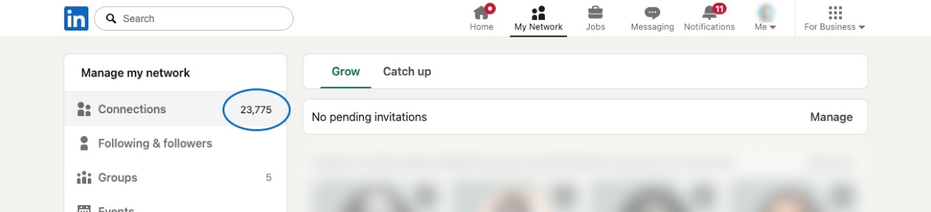Go to linkedin.com/mynetwork/grow and look for the number shown below: